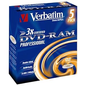 Verbatim DVD-RAM 3X Speed Cartridge Type 4 Double Sided (Removable) 5er Pack 9,4GB DVD-Rohlinge