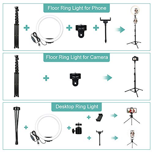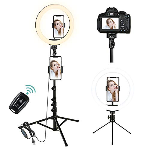1.6m Ringlicht mit Stativ, Ring Light mit 2 Alternativen Stativen, Ringleuchte mit Fernbedienung, 3 Farbe und 10…