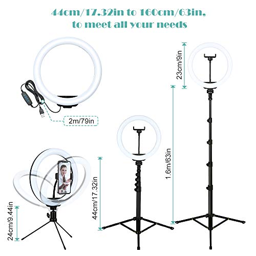 🔺[2 Metal Tripods] Das ringlicht ist mit zwei stativen ausgestattet, eines ist ein Metall-Schreibtischstativ, eines ist ein einziehbarer metallstativständer. Das stabile stativ kann von 44cm bis 160cm verlängert werden und kann je nach Bedarf auf eine beliebige Höhe eingestellt werden. Dieser leichte stativständer besteht jeder hochwertigem metall, wodurch er stabiler wird und eine längere lebensdauer gewährleistet.
