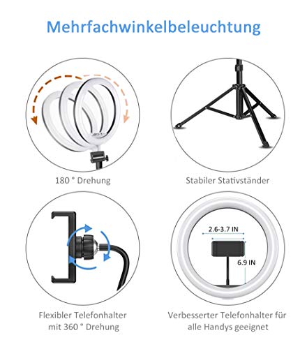 💎【2-in-1-Ringlicht Desin】Telefon-Ringlicht mit 2-in-1-Design, das den Telefonhalter und das Selfie-Ringlicht kombiniert. Das LED-Ringlicht verfügt in der Mitte über eine flexible Halterung, mit der das Mobiltelefon leicht gedreht werden kann Halter in jedem idealen Winkel, kann bis zu 3,7 „breit sein, was für alle Smart-Handys adäquat ist.