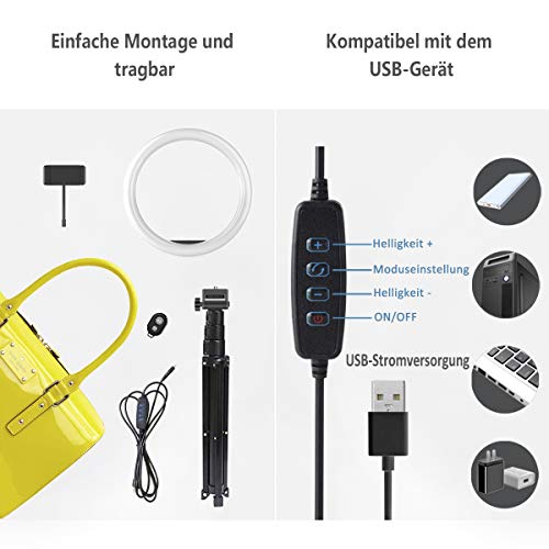 💎【Mehrfachverwendung Selfie-Ringlicht】 Das LED-Selfie-Ringlicht eignet sich für Tik-Token, Live-Übertragung, Online-Unterricht, Make-up, Abguss, Video, Bild in dunklen Szenen usw. und kann auch als Licht zum Lesen verwendet werden.