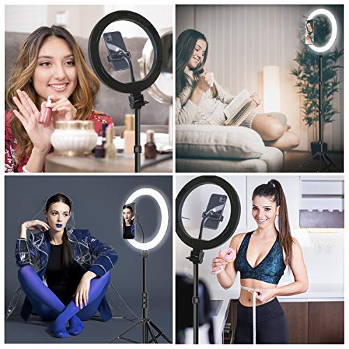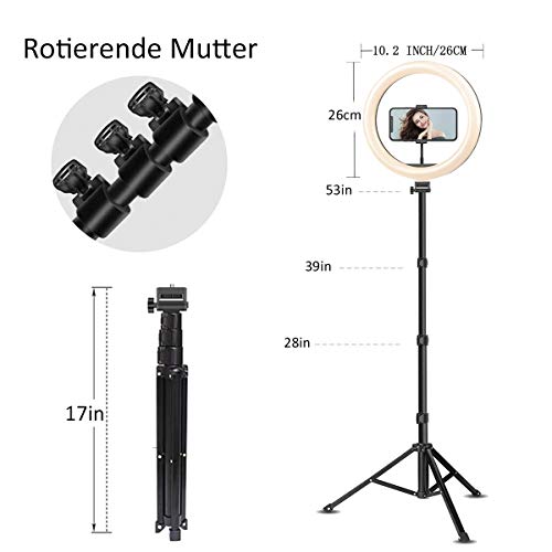 10,2″ LED Selfie Ringlicht mit verstellbarem Stativständer, dimmbarer LED-Kamera Beauty Ring Fülllicht mit Telefonhalter für Live-Stream/Make-up/Videoerstellung, kompatibel mit Allen Handys