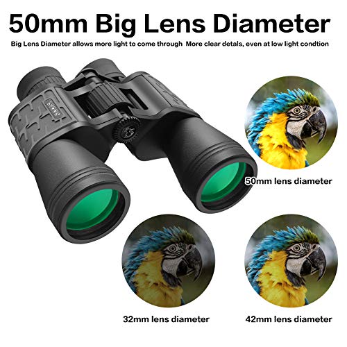 [Professionelles binokulares Fernglas] 10-fache Lupe, 50mm Objektiv. Es bietet Ihnen das perfekte Abguss in einem Distanz von 1000 Yard. Dieses professionelle binokulare Fernglas eignet sich sehr gut für Outdoor-Aktivitäten wie Vogel- und Sternenbeobachtung, Reisen und Jagen. Die klaren und hellen visuellen Effekte eignen sich bekannt als für ferngesteuerte Aktivitäten in Innenräumen wie Konzerte und Sportveranstaltungen.