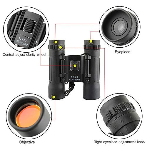 【12 × 30 scharfes und weites Sichtfeld】12-fache Ausbelichtung, um Dinge bunt zu sehen, mit einem 30-mm-Objektiv, bietet das Fernglas die bequemste und klarste Blick. 12-fache Ausbelichtung hilft Ihnen, das wunderbare an Stelle brillante Details zu erfassen. Bekannt als an Stelle Brillenträger qualifiziert.