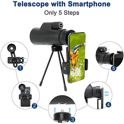 ★【Weit kompatibel】Dieses monokulare Teleskop kommt auch mit einem Smartphone-Konverter und einem verstellbaren Stativ, kompatibel mit fast allen Smartphones. Einfach zu installieren, schnell zu teilen HD Abzug oder Video zu Ihrem Freund. Mit der kompakten Größe dieses monokularen Teleskops können Sie es sogar in Ihre Tasche stecken. Eine Handschlaufe und eine Tragetasche ist auch für Ihre Lagerung zur Verfügung gestellt, bequem zu befestigen für überall.