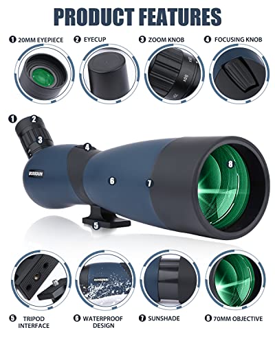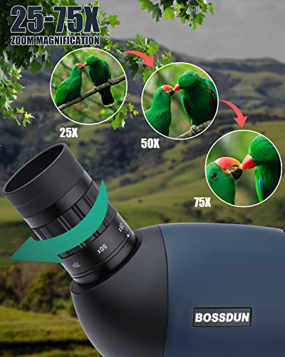 🐦【Leistungsstarkes Spektiv 25-75×70】- Einstellbare 25- bis 75-fache Darstellung und dynamisches 80mm Fokussiersystem für große Objektivlinsen, mit dem Sie Ihr Erledigung einfach vergrößern können. Das ergonomische Design des um 45 Nuance geneigten Okulars bietet komfortableres Betrachten und bringt Ihnen eine wunderschöne Naturlandschaft näher. Perfekt für Zielschießen, Bogenschießen, Jagen, Vogelbeobachtung, Tierbeobachtung, Wandern, Camping, Landschaft, Sport im Freien, astronomische Beobachtung usw.