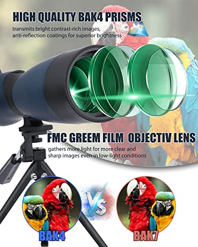 🐦【Premium FMC Optic Lens】 – Das vollständig mehrfach beschichtete 80mm Objektiv bietet ein breites Sichtfeld. Die hochwertige BAK4-Porro-Prismenoptik im Spektivbereich erhöht die Lichtdurchlässigkeit und liefert helle und scharfe Bilder. Dadurch wird Ihre Sicht heller und klarer.