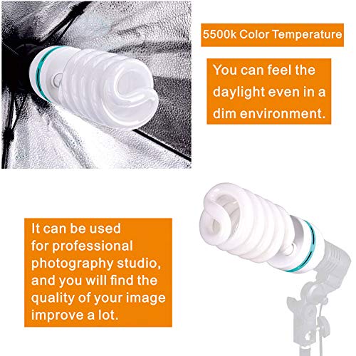 【2x85W weichere und hellere CFL-Fotolampe】 FGen Fotolampen enthalten 2x85W Fotolampen. Sie sind mit einem E27-Universalschraubenmund und einer Standardfarbtemperatur von 5500 K ausgestattet. Die FGen Fotolampen sind kompatibel mit anderen E27-Sockel-Softboxen und Fotostudio-Sets oder für den Heimgebrauch. FGen photo ist Ihre beste Kür, wenn Sie nach einer Lampe für Ihr Studio stöbern.