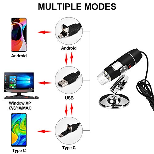 3-in-1-Schnittstelle: Verwenden Sie Typ C oder Micro-USB, um dieses digitale Mikroskop an Ihr Android-Smartphone oder Ihren Computer anzuschließen. Es unterstützt auch das Aufsaugen von Bildern und Videos. Aber können Sie mit unserem USB-Mikroskop schöne Momente aufzeichnen.