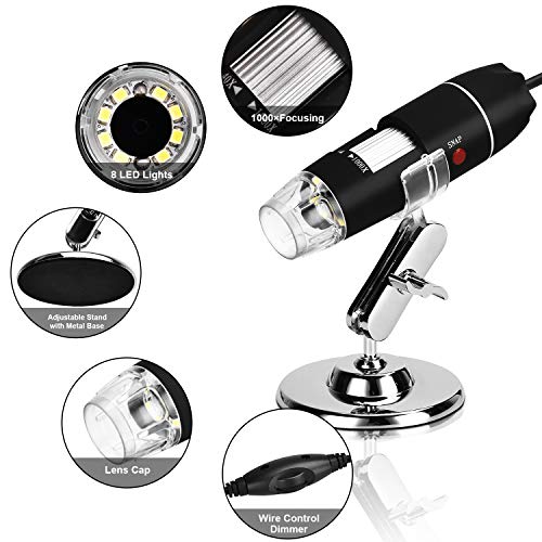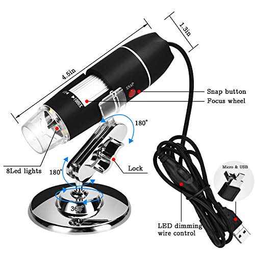 Verbesserte Leistung: Die Guss unserer digitalen Mikroskopkamera beträgt 40x-1000x. Gleichzeitig verfügt das USB-Mikroskop über 8 LED-Leuchten. Mit der LED-Dimmsteuertaste können Sie die Helligkeit des Lichts einfach steuern und Bilder klar und hell anzeigen.
