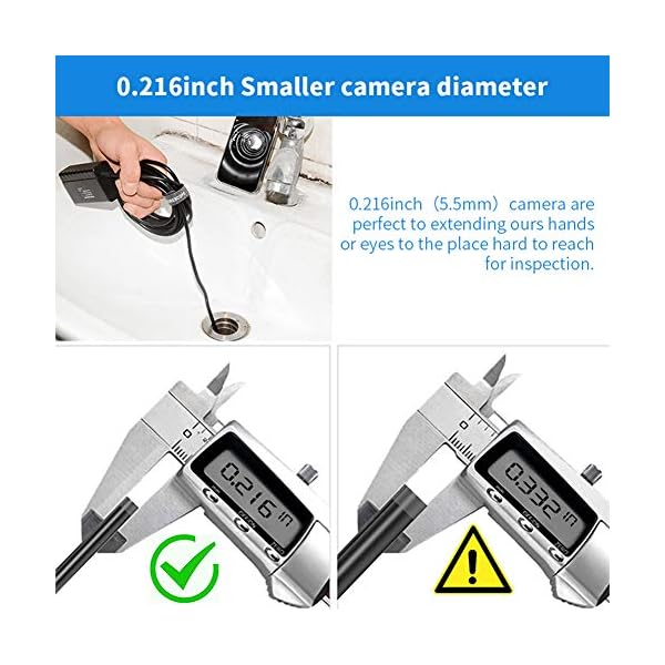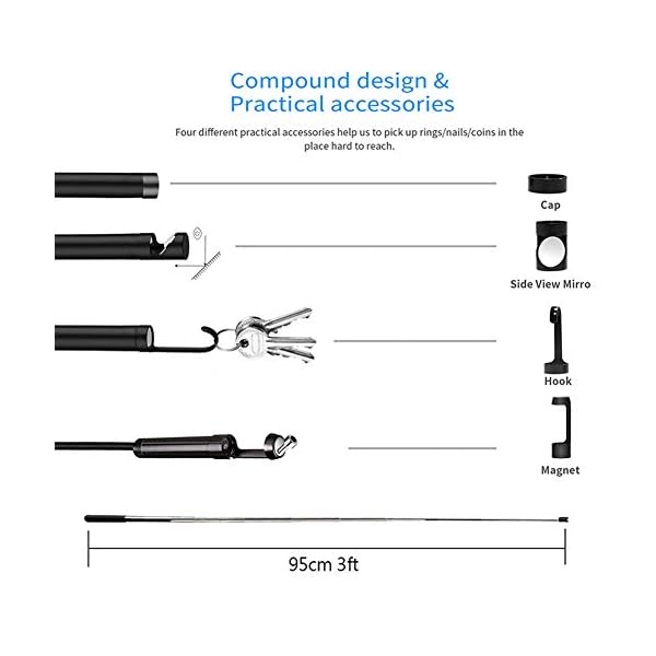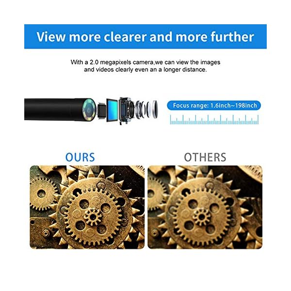 ✅ Beobachtungsabstand 3 cm-5m: 5,5 mm. Im Gegensatz zu anderen Endoskopen auf dem Absatzgebiet, die Fokuslänge des Endoskops: 1-3 Gebühr (3 cm-8 cm), dieses Endoskop kann mehr als 3 cm-5m beobachten, was für Fernereignüsse bequem ist.