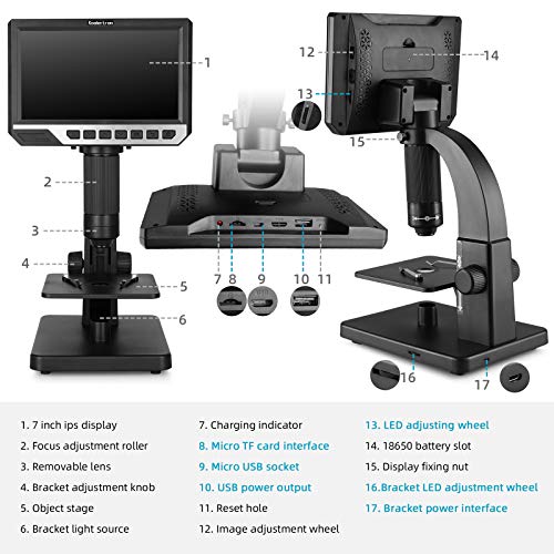 ✅【Aufladbare Batterie】Dieses 7-Zins-Digitalmikroskop enthält eine austauschbare, wiederaufladbare Lithium-Batterie (2600mAh), das Digitalmikroskop arbeitet bis zu 2 Stunden nach voller Aufladung.Es ist sehr tragbar und bequem für den Außeneinsatz.
