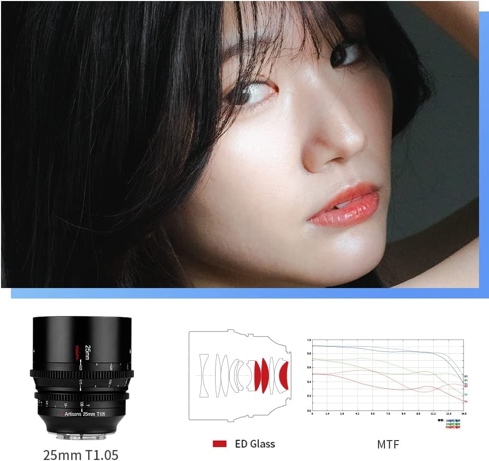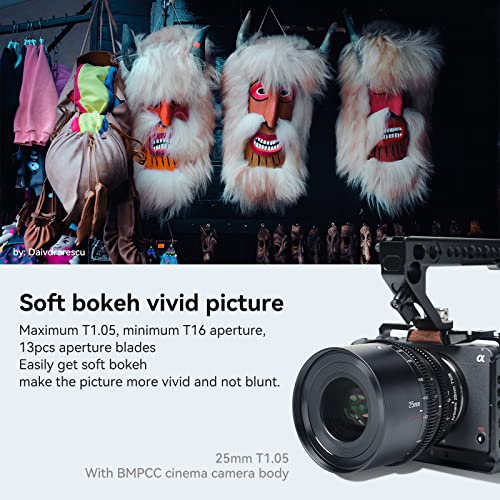 7artisans 25 mm/35 mm/50 mm T1.05 große Blende Cine Objektiv Weitwinkel manueller Fokus geringe Verzerrung Mini Cinema Objektiv (25 mm T1.05, für Leica/Sigma/Panasonic L)