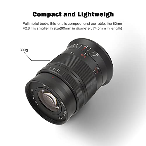 7artisans 60mm F2.8 II APS-C Format Makro-Objektiv, Kompatibel mit Sony E-Mount-Kameras Kameras Sony A5000 A5100 A6000 A6100 A6300 A6400 A6500 A6600