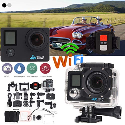 Action Cam 4K 20MP Sportkamera WiFi Unterwasserkamera 2.4G Fernbedienung Wasserdicht 40m 2.0 Verzinsung LCD Bildschirm 170 ° Weitwinkel mit Zwei 1200mAh Batterien externes Mikrofon
