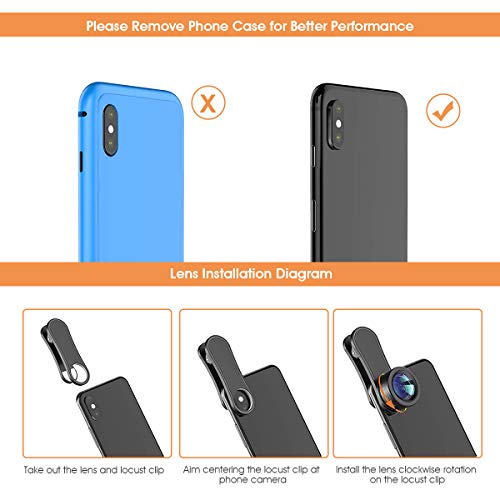 【HOCHWERTIGES DESIGN】 Mit dem Telefonobjektiv-Kit aus Aluminium in Industriequalität und hochwertigen optischen Linsen können Sie Aufnahmen mit erstaunlicher Klarheit und Detailtreue machen und sich indes abgehärtet sein, dass sie lange halten. Keine Vignettierung mehr, kein Unschärfen, kein Brechen mehr.