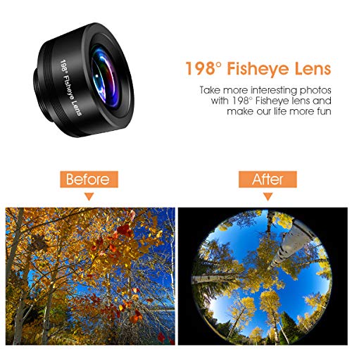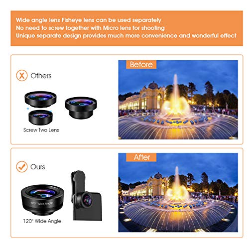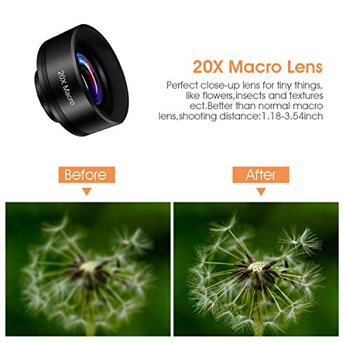 【ERFÜLLEN SIE MEHR FOTOBEDÜRFNISSE】 Mit dem 120 ° Weitwinkelobjektiv können Sie größere Szenen wie Stadtszenen und Gruppenaufnahmen absorbieren. Das 20X-Makroobjektiv nimmt erstaunliche Nahaufnahmen in gestochen scharfen Details auf. Fisheye-Objektiv erstellen lustige kreisförmige Bilder.