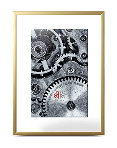 aFFa frames, Alu, Aluminium Bilderrahmen, pflegeleicht, rechteckig, mit Acrylglasfront, Mattgold, 40×50 cm