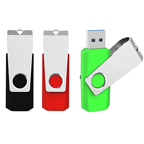 Aiibe USB-3.0-Flash-Laufwerke, 64 GB, mit LED-Anzeige, 3 Stück, Schwarz / Rot / Grün