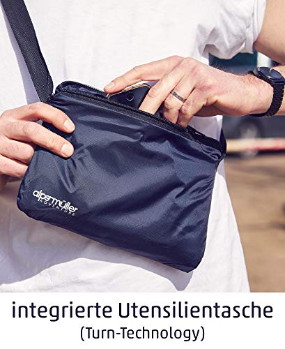 ☂️ TURN TECHNOLOGIE – Vor dem Hintergrund der integrierten Umhängetasche kann das Regencape platzsparend verstaut werden. Von 210 x 45 cm auf daher noch 26 x 17 cm – das Cape ist ein wahrer Verwandlungskünstler!