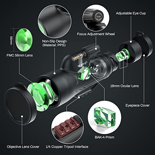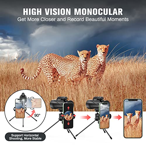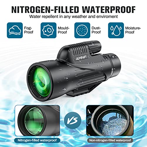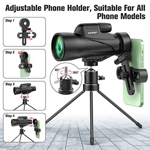 AMNF Monokular 12X56 HD Monokular Teleskop Original mit drehbarem Stativ/Smartphone Adapter, IPX7 Wasserdichtes Fernrohr…