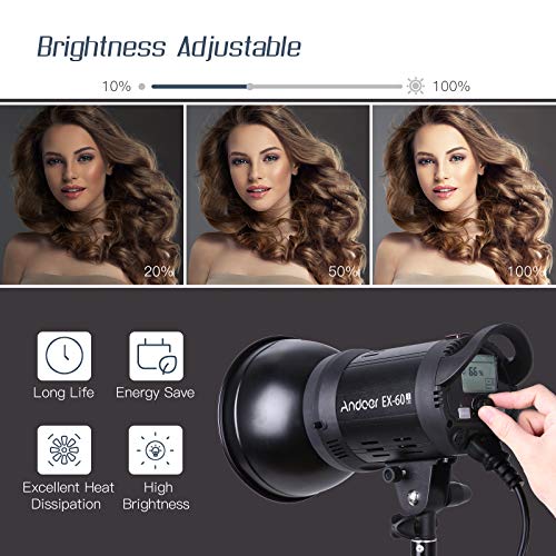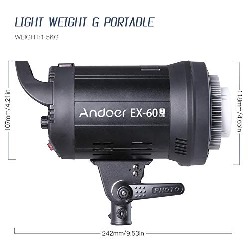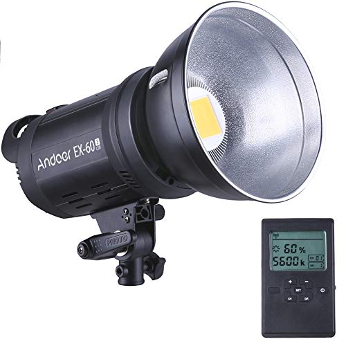 Andoer 60W Fotostudio LED Video Leuchte, Dimmbares 5600K Hohe Energie Blitzlicht mit Bowens Halterung LCD Bildschirmund…