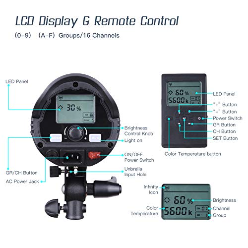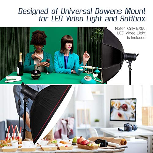Große Leistung: Das leistungsstarke 60-W-Ausgangslicht hat eine Farbtemperatur von 5600 K ± 200 K, einstellbare Helligkeit, LCD-Bildschirm zur Anzeige der Parameter, CRI≥95 macht die Farben lebendiger indes der Aufnahmen.