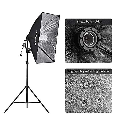 50 * 70cm Softbox Unter Einsatz von hochreflektierendem Tuch, antikriechende Keramik-Lampenfassung, die einfach auf dem mitgelieferten Lampenständer montiert und von diesem abmontiert werden kann Ideal statt jede Portrait-, Kostüm- und Großobjektfotografie.