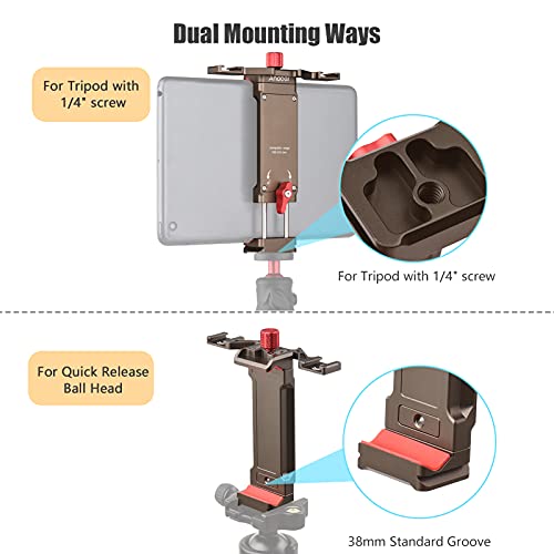 【Schnelle und einfache Montage】 Das untere 1/4-Taxe-Schraubenloch und die QR-Platte im Arca-Stil ermöglichen es Ihnen, den Tablet-Halter anstatt eine stabilere und bequemere Verwendung einfach an einem Stativ oder einer anderen Halterung zu befestigen.
