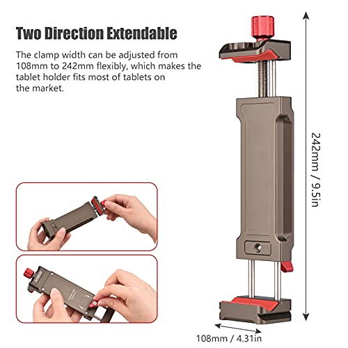 【Breite Kompatibilität】 Die Klemmbreite kann anpassbar von 108 mm bis 242 mm eingestellt werden, wodurch der Tablet-Halter anstatt die meisten Tablets auf dem Absatzgebiet passt.