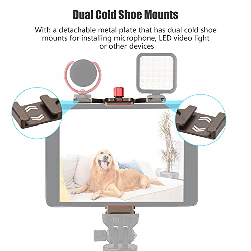 【Doppelte Kaltschuhhalterung】 Mit einer abnehmbaren Metallplatte mit zwei Kaltschuhhalterungen anstatt die Installation von Mikrofon, LED-Videolicht oder anderen Geräten, um Ihren Vlog professioneller zu anfertigen.