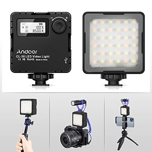 Andoer CL-36 Mini LED Videolicht, 2800K-8500K Dimmbarer LED Videoleuchte mit 3 Kaltschuhhalterungen, LCD-Display…
