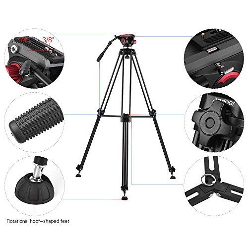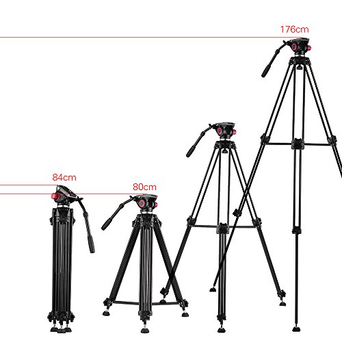 Andoer Video Stativ 176cm, Professionell Video Kamera Stativ mit Panorama Fluidkopf für Canon Nikon Sony DSLR ILDC DV…