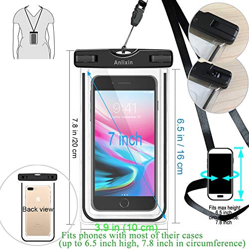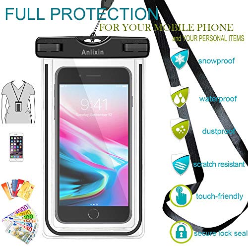 【IPX8 ZERTIFIZIERT MIT VOLLSCHUTZ】Zu Ihrer Sicherheit wurde jede Anlixin wasserdichte Handytasche 30 Minuten lang unter Wasser in einer Abgrund von 30 Minuten getestet. Sie können vulgo das Handy durch transparente Fenster der Handyhülle einwandfrei Text eingeben oder telefonieren um den Abfall nicht direkt auf den Bildschirm berühren. (Nicht für Touch-ID Fingerabdrücke).