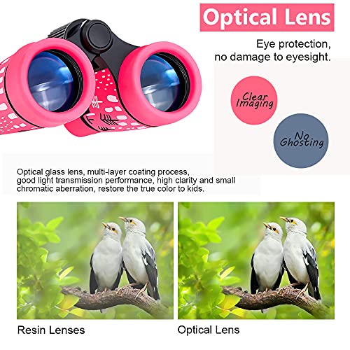 Stabiles, klares Kinder-Fernglas mit optischer Glaslinse, mehrschichtiger Beschichtungsprozess, gute Lichtdurchlässigkeit, hohe Klarheit und kleine chromatische Abbildungsfehler, die Babys die schönen Farben der realen Welt symbolisieren können.