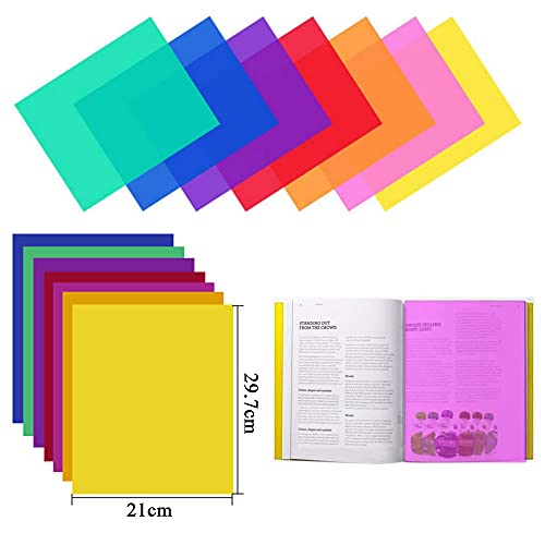 【Transparente Farbige】Das Set enthält 14 Kunststofffolien, Für jede Farbe gibt es zwei Gelfilter mit einer Größe von 29,7 * 21 cm. Die Gelfilter sind in Gelb, Pink, Lila, Orange, Blau, Rot und Grün erhältlich.