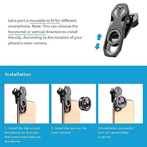 Apexel [aktualisierte Version HD Phone Lens Kit-170 ° Superweitwinkel,10x Makroobjektiv,2.0X Teleobjektiv,110…