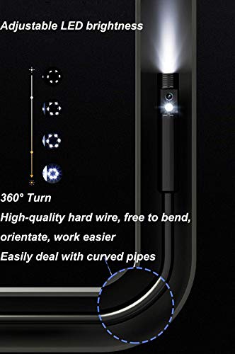 [Semi-Rigid-Kabel] Das Semi-Rigid-Kabel ermöglicht es dem Endoskop, seine Form beizubehalten. Sie können die Richtung des Endoskops steuern, indem Sie das Kabel leicht biegen oder gerade nach oben bewegen, um Zugriff zu engen Räumen oder engen dunklen Stellen für zerstörungsfreie Tests wie z Ablagerungszylindermotor und andere Geräte.