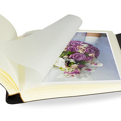 Das Fotoalbum enthält 40 hochqualitative Seiten in Cremeweiß (80 Fotoflächen), die durch schützendes Seidenpapier abgetrennt sind.