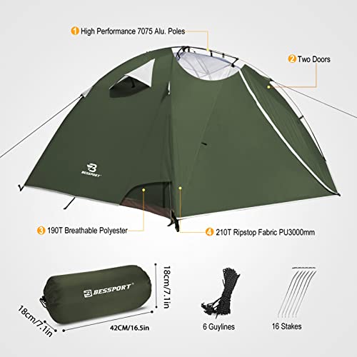 Bessport Ultraleichte Camping Zelt 2-3 Personen Zelt 3-4 Saison Wasserdicht Zelt, Sofortiges Aufstellen für Trekking…