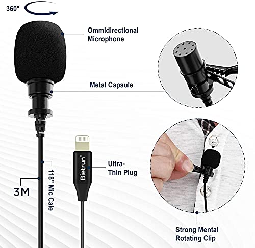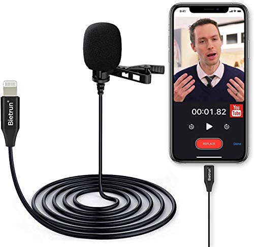 Bietrun Lavalier Mikrofon Lightning Ansteckmikrofon 3M langes Kabel Omnidirektional Kondensator Mikro für iOS iPad…
