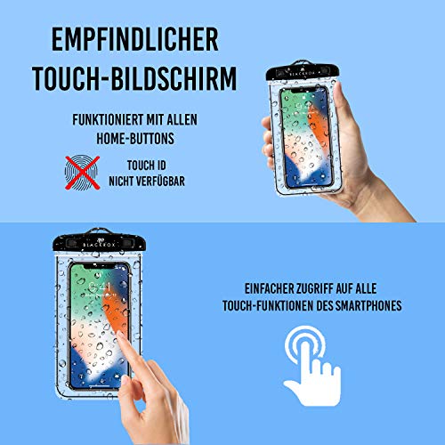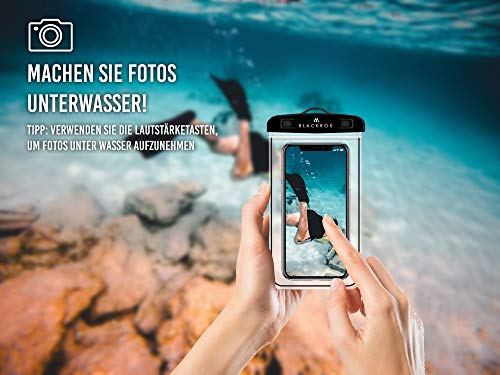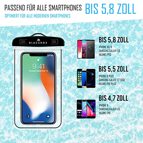 BLACKROX wasserdichte Handyhülle für iPhone 11, 12, 13, X/XS, 8, 7, 6s, Samsung S10, S9, S8, S7 – Wasserfester Schutz, Beachbag (Schwarz)