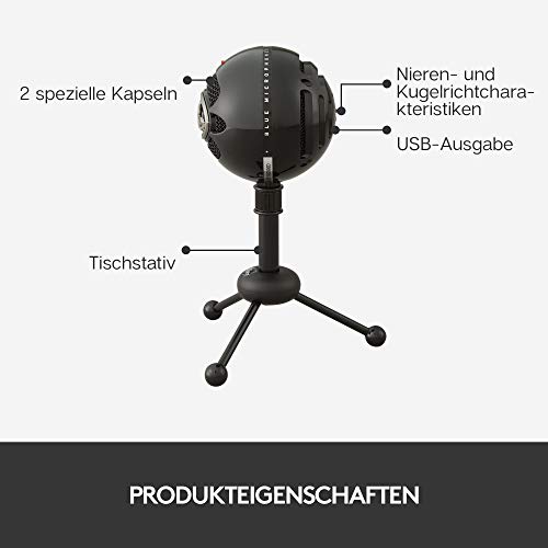 Blue Snowball USB-Mikrofon für Aufnahmen, Streaming, Podcasting, Gaming auf PC und Mac, Kondensatormikrofon mit Nieren- und Kugelcharakteristik und stilvollem Retro-Design – Schwarz