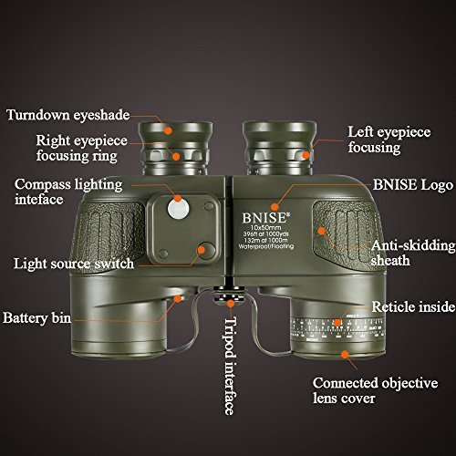 BNISE Nautisches Fernglas mit Kompass, Entfernungsmessen mit dem Kompass, 10×50 großes Objektiv für weites Feld BAK4…