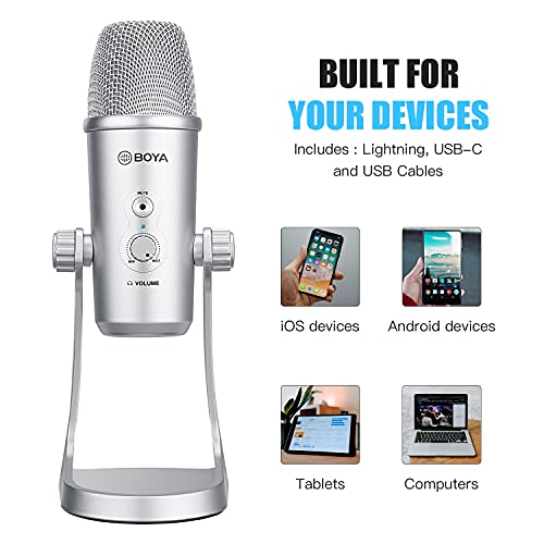 Das BOYA BY-PM700SP ist ein USB-Kondensatormikrofon und mit den meisten iOS-Geräten, Android-Geräten, Windows- und Mac-Computern kompatibel