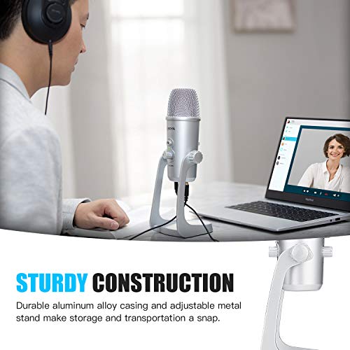 Die robuste Ganzmetallkonstruktion umfasst einen Tischständer, mit dem das Mikrofon in verschiedenen Winkeln eingestellt werden kann, sowie eine Funktion zum Herunterklappen des Mikrofons für Aufbewahrung und Transport