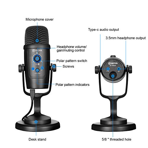【WIDE ADAPTABILITY】: BOYA BY-PM500 ist ein USB-Kondensatormikrofon, einschließlich USB-A- und USB-C-Kabel, kompatibel mit Windows- und Mac-Computern, den meisten Typ-C-Geräten.