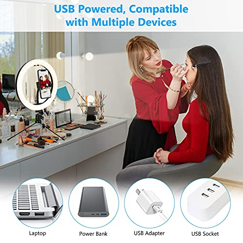 ✨【Multifunktionales Selfie-Ringlicht】Das 2-in-1 Design kombiniert den Telefonhalterung und das Selfieringleuchte. Perfektes zusätzliches Licht für YouTube, Live-Stream, Make-up, Selfie-Fotos, Online-Unterricht, Vloggen, Videoaufnahmen, Facebook Live usw. Es kann auch als Tischlampe zum Lesen verwendet werden, einfach zu installieren oder zu herumgammeln, sehr gut für unterwegs geeignet.