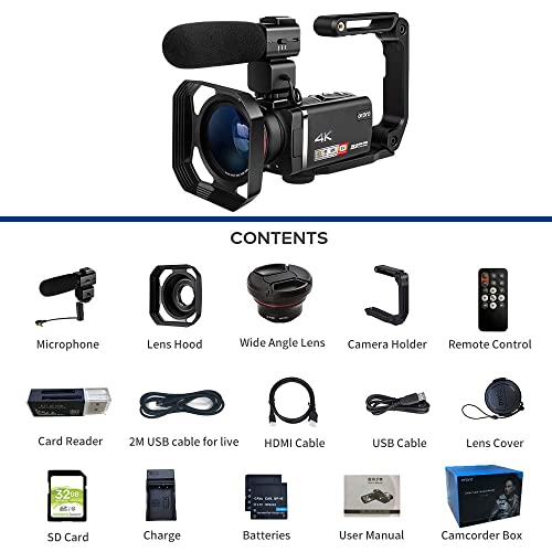 ORDRO Camcorder 4K AX65 Livestream Videokamera mit 12X optischen Zoom 3,5 Zoll IPS Bildschirm HD 1080P 60FPS 4K HD…