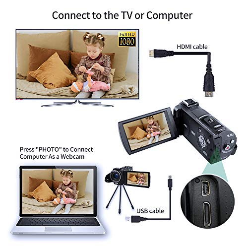 【Als Webcam & WiFi-Camcorder】 ✔– Als Webcam-Kamera können Sie direkt auf Facebook, YouTube, Instagram und Skype streamen. Generalisieren Sie die Videokamera mit dem USB-Kabel an den Computer an und voten Sie die PC-Kamera aus. Laden Sie die App „D Video“ herab, indem Sie den QR-Code im Handbuch scannen oder im App Store abweiden. Sie können Fotos und Videos direkt auf Ihr Smartphone übertragen oder mit Ihren Freunden teilen.